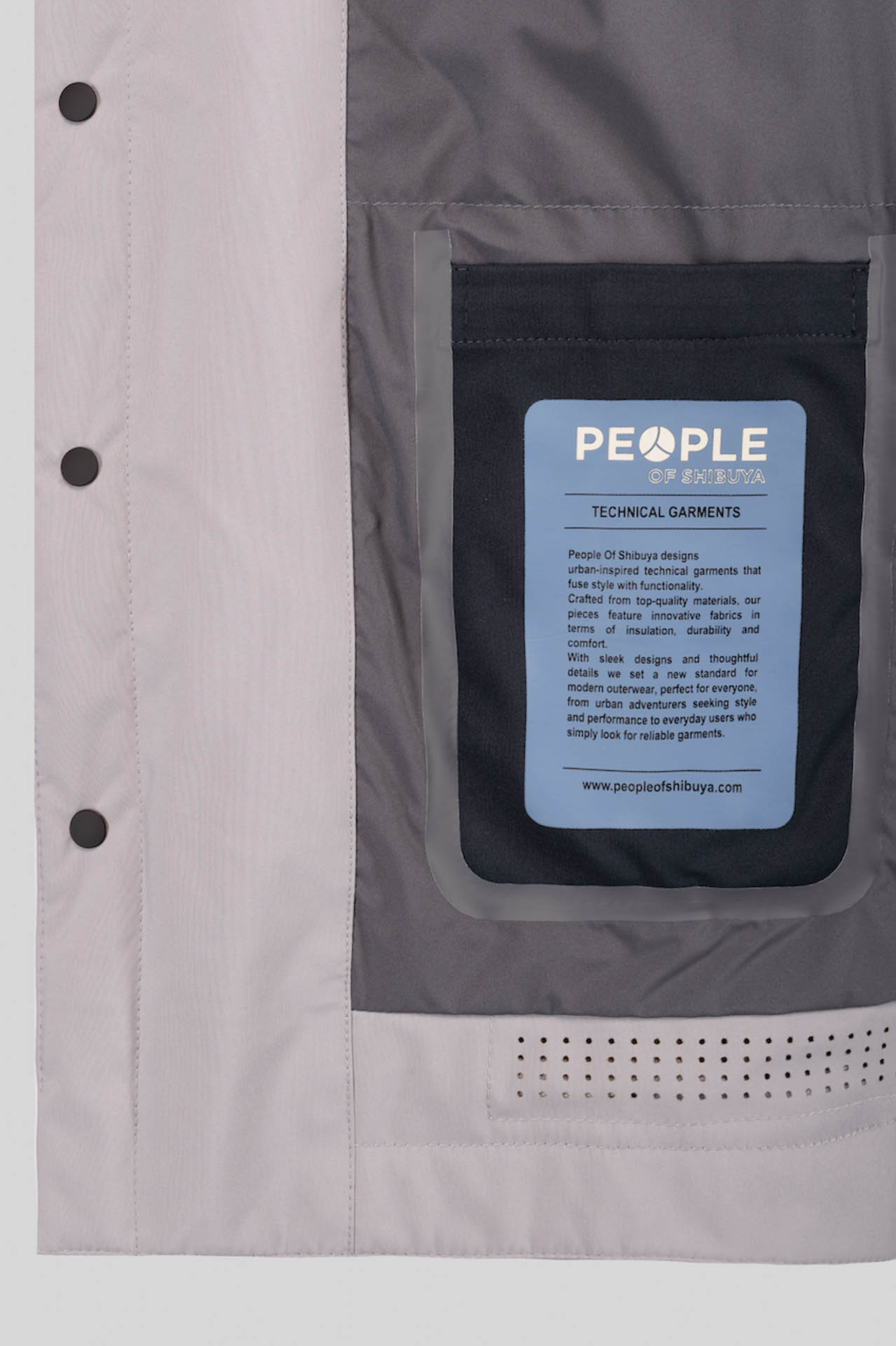 • Closure with hidden snap buttons.