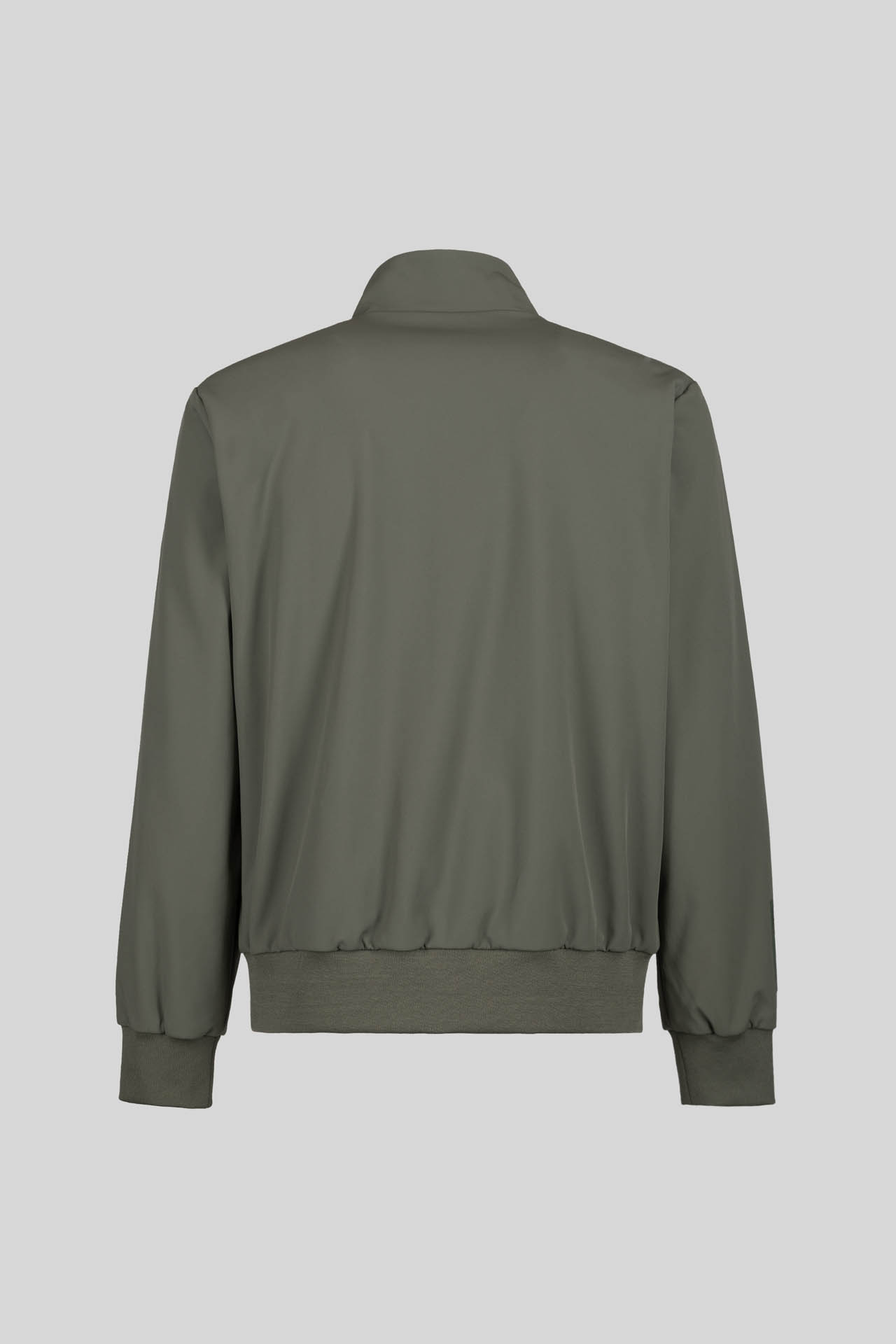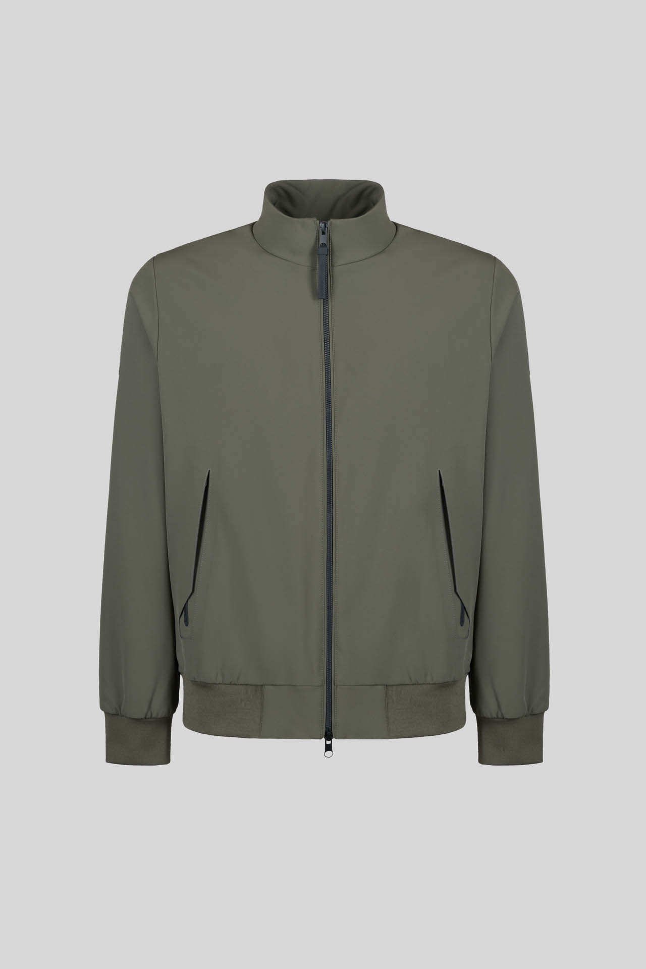 - Iconic bomber jacket with stand-up collar in technical softshell fabric.