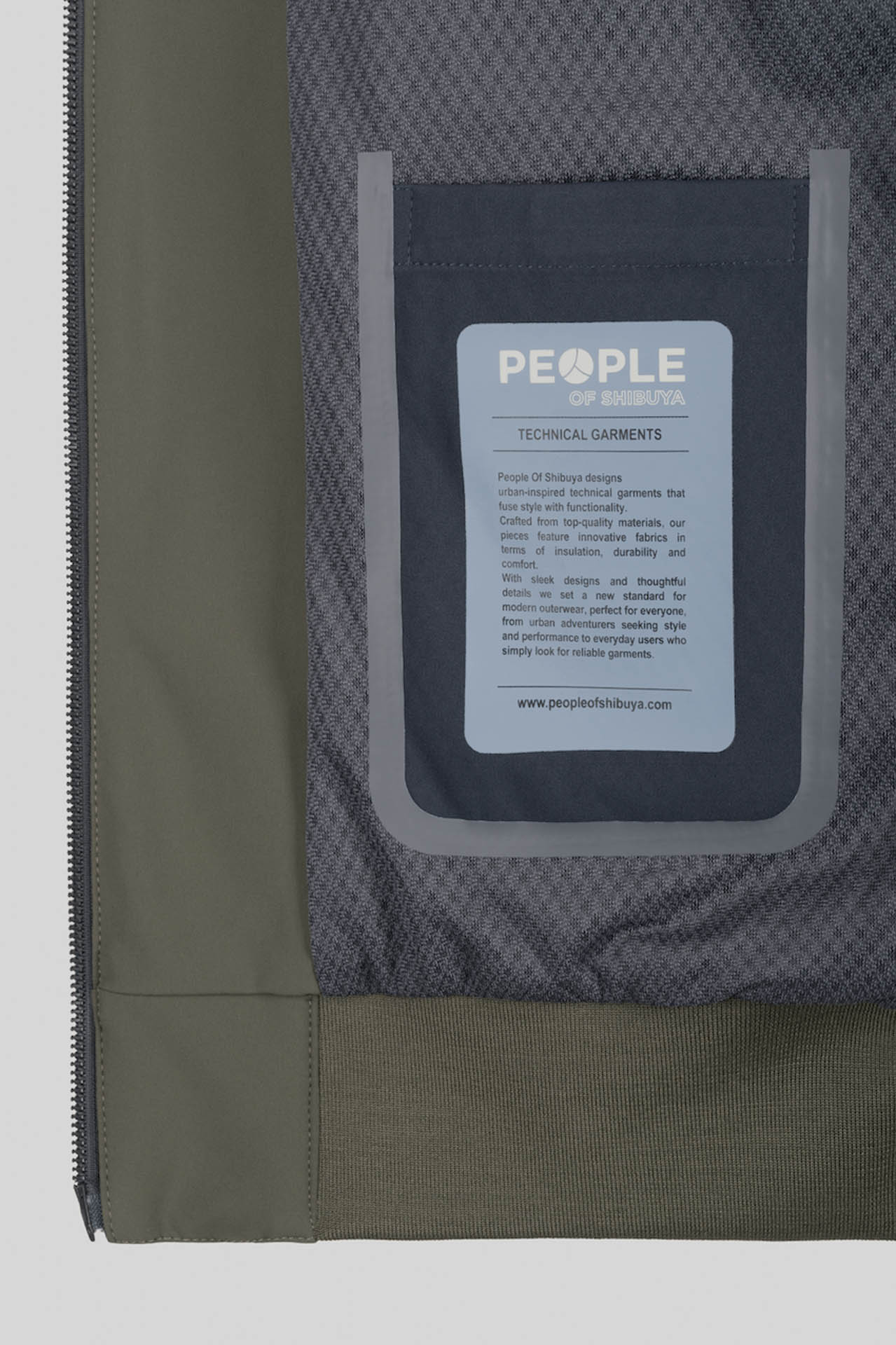 - Heat-sealed internal pocket with zip closure on the left side for documents and mobile phone.