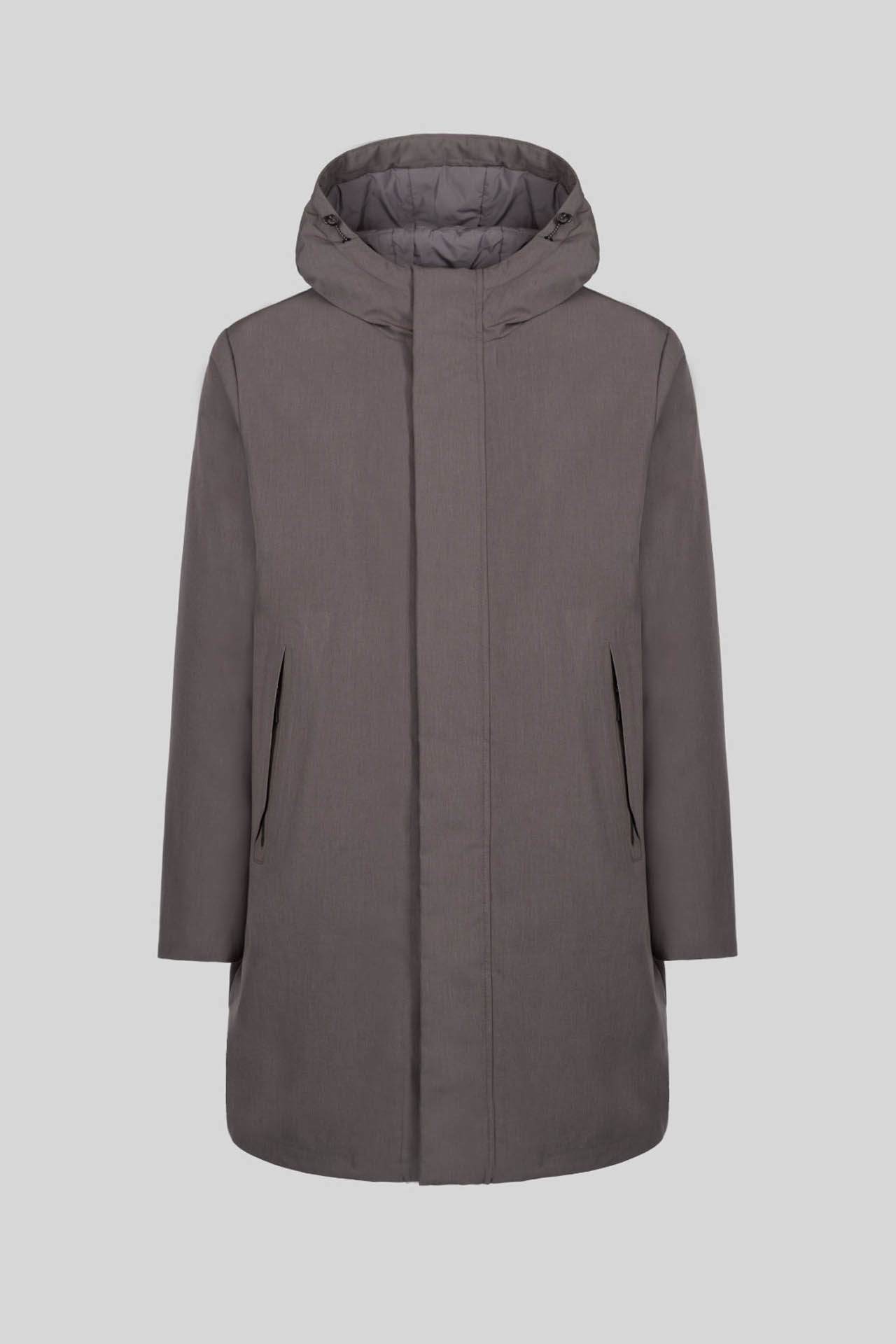 • Parka in melange-effect technical fabric with hood and drawstring.