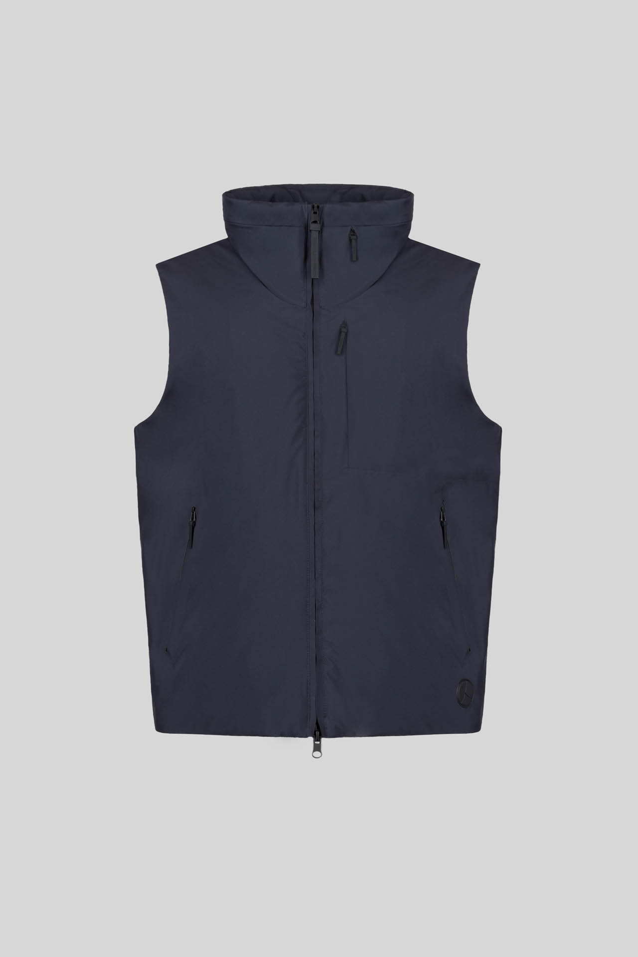 - Gilet in tessuto tecnico con isolante termico interno “FELLEX” 100% riciclato con cappuccio in contrasto ghost inserito nel collo.